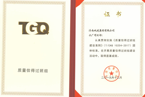 集團(tuán)水廠項(xiàng)目部榮獲中國質(zhì)量協(xié)會(huì)“質(zhì)量信得過班組”